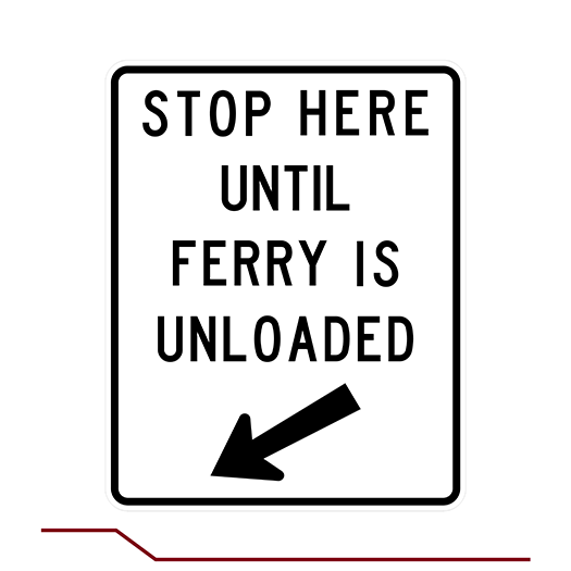 R53-51L STOP HERE UNTIL FERRY IS UNLOADED - DOWNWARD LEFT ARROW